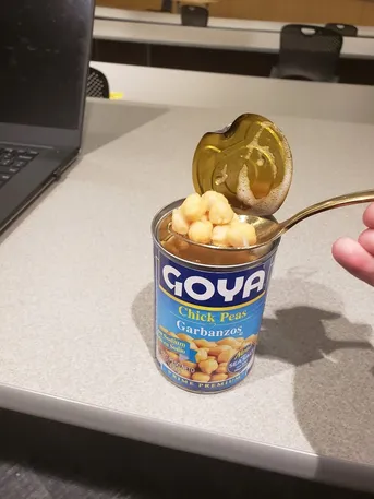 Dinner was simple but good: chickpeas out of the can and two slices of bread with peanut butter.