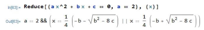 The second horseman is Reduce. Reduce doesn’t require its solution to hold for all values of the unsolved variables. Instead, it will report the conditions that solve the system. With the same input that we gave to the first Solve, Reduce correctly deduces that there is a solution as long as a == 2.